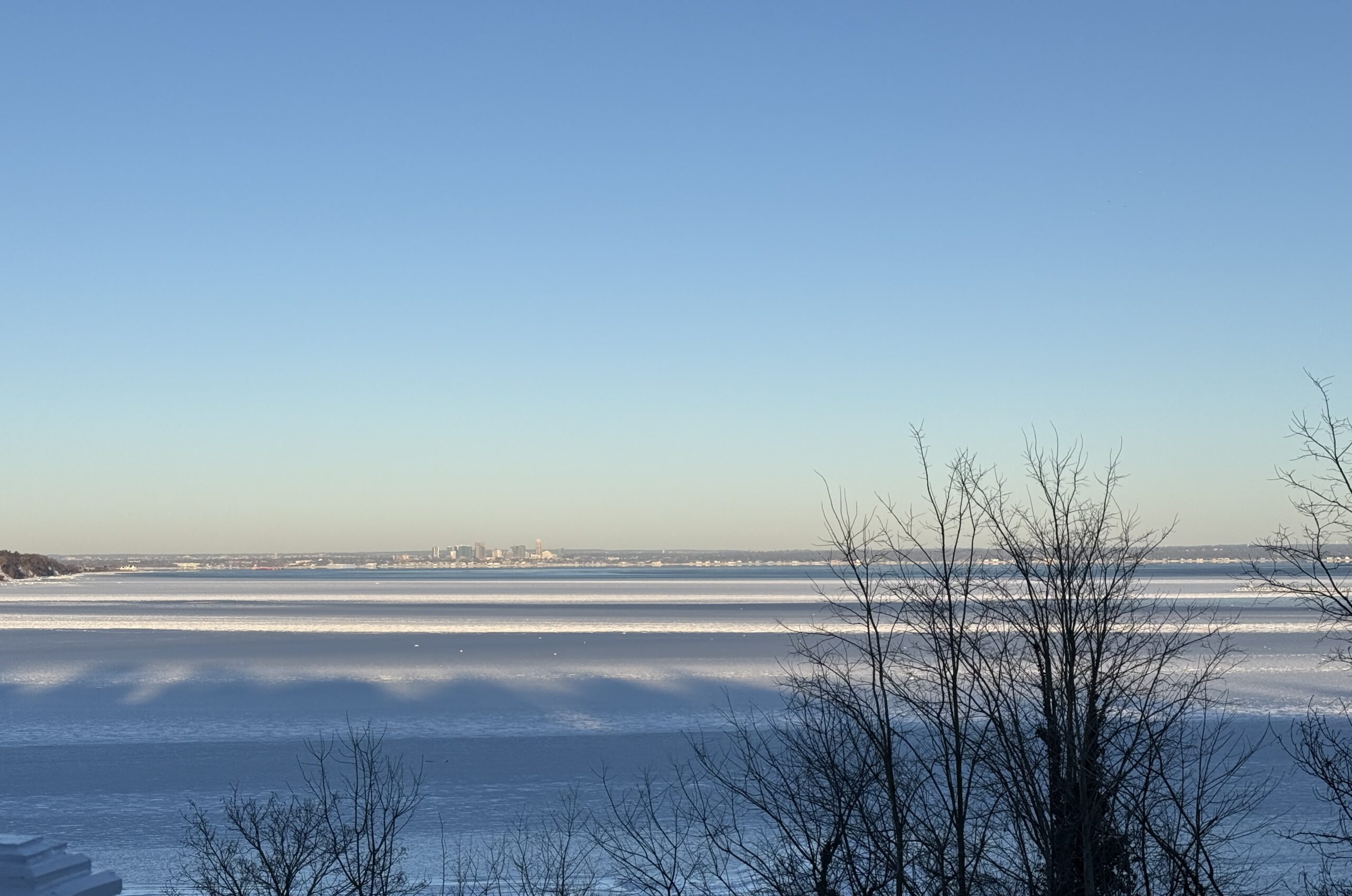 Even in winter, it is this beautiful. This is the first time I ever saw this harbor completely frozen.